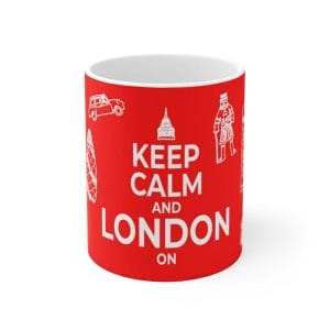 This adorable microwave and dishwasher safe mug will help you to keep calm and….London on!